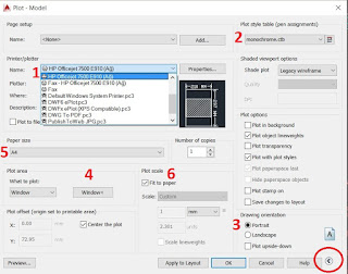 - Bu alandaki ayarlar çiziminizi renkli yada siyah-beyaz yazdırma tercihlerini değiştirebileceğiniz yer. Örneğin "monochrome.ctb" yi seçtiğinizde siyah "acadlt.ctb" yi seçtiğinizde vermiş olduğunuz renklerde yazdırılacaktır. 4 numarayla göstertiğim alandan yazdırılacak alanı seçtiğinizde sol altta bulunan "preview.." kısmından önizleme yapabilirsiniz. 2 numarayla gösterdiğim alana geri dönersek; en sağında küçük bir ikon göreceksiniz. Üzerinde beklediğinizde "edit" yazar. Burdan layer larınızda kullandığınız renk kodlarına göre yazdırma seçeneklerini değiştirebilirsiniz. Örneğin "Color 5" i kullandığınız iki layer ınız var diyelim.Color 5 e gelip yan taraftaki Properties kısmından Color u değiştirip başka bir renk yaparsanız yada diğer parametreleriyle oynarsanız Color 5 seçili tüm layerlarınızda aynı değişiklik çıktı alırken uygulanacaktır.